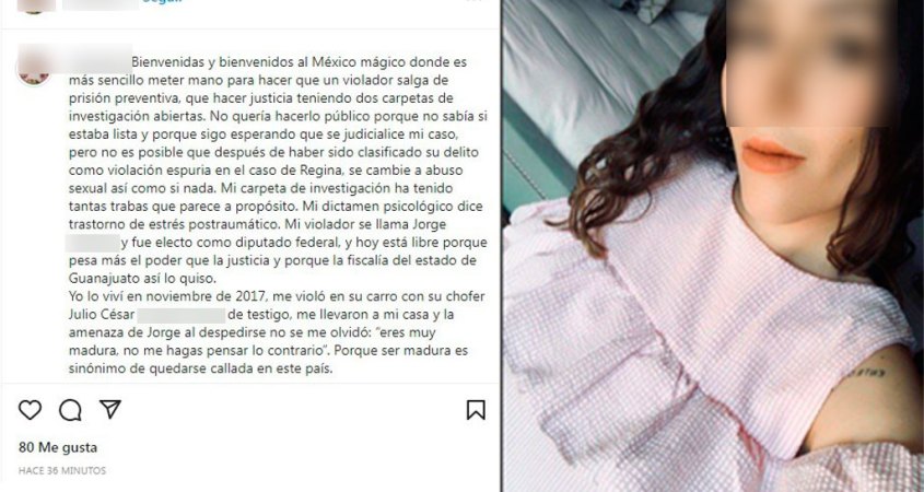 “Mi violador se llama Jorge R.y fue electo como diputado federal, y hoy está libre porque pesa más el poder que la justicia y porque la fiscalía del estado de Guanajuato así lo quiso”, compartió.