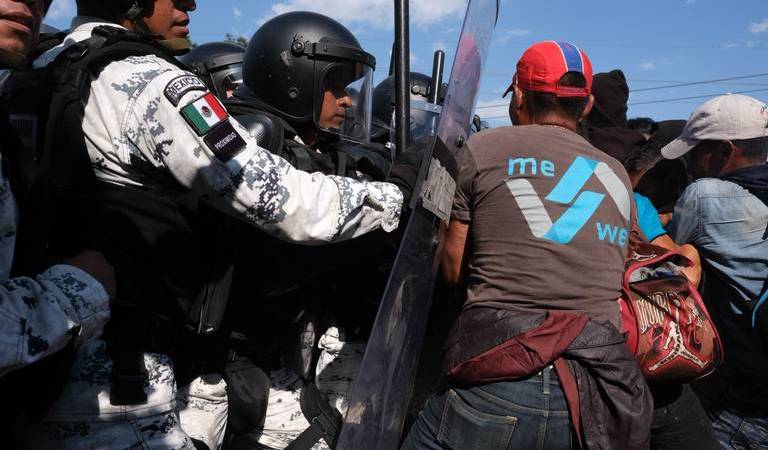 Cabe destacar, que en un primer enfrentamiento las autoridades mexicanas detuvieron a unos 30 migrantes entre ellos mujeres y niños que fueron subidos a las camionetas de migración