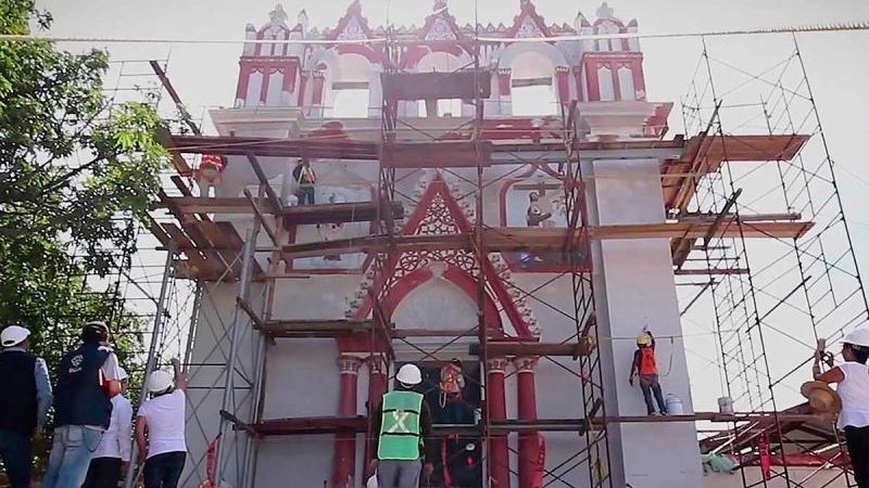 El presidente recordó que su gobierno tiene un programa de conservación de sitios arqueológicos relativos a la época prehispánica y lo mismo se hace en el caso de la conservación de templos coloniales, en los cuales, admitió, se requiere de mucho tiempo para su reconstrucción debido al cuidado que implican, aunque se comprometió a que en el 2022 se concluirá su reparación total.