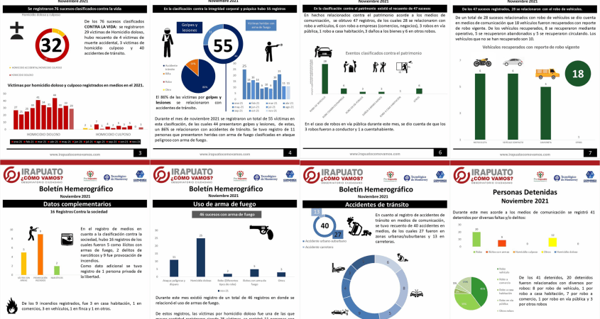 El Observatorio ciudadano Irapuato ¿Cómo vamos?, presenta el Boletín Hemerográfico del mes de noviembre 2021.