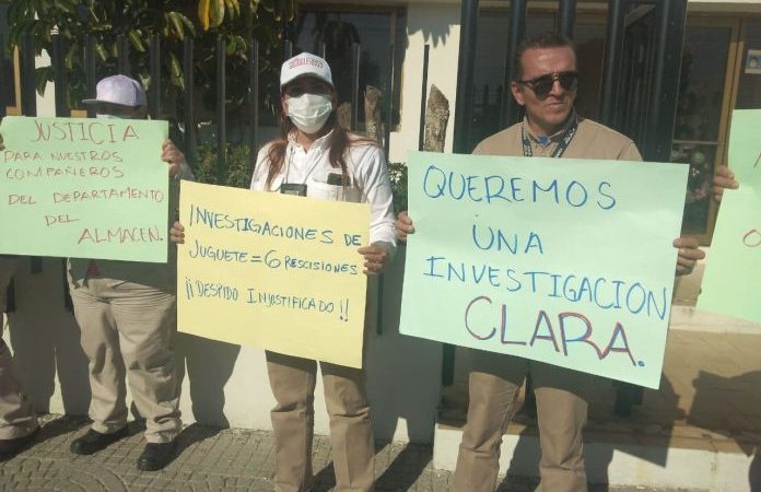 Algunos de los mensajes denunciaban: ‘investigaciones patito’, ‘6 despidos injustificados’, ‘exigimos justicia para nuestros compañeros’ y ‘queremos una investigación clara’, entre muchas otras.