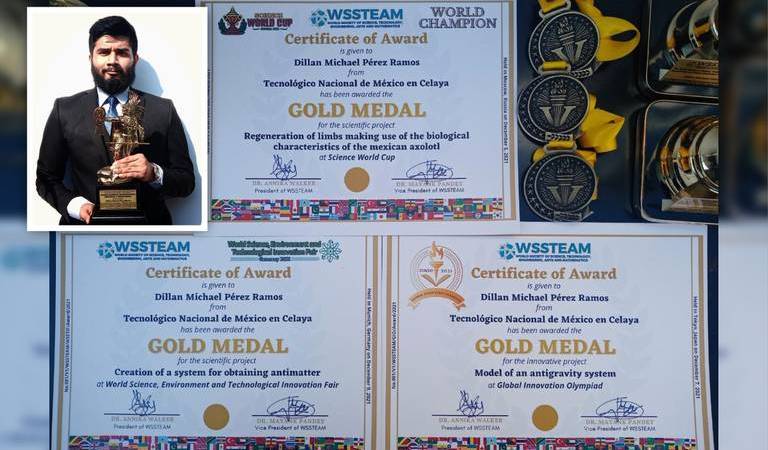 Dillan Michael Pérez Ramos, estudiante de noveno semestre de Ingeniería Ambiental del Tecnológico Nacional de México en Celaya, puso en alto a la ciudad al obtener el primer lugar en los tres concursos mundiales organizados por la World Society of Science, Technology, Engineering, Arts and Mathematics, ganándole a países como Rusia, China, Iraq, Palestina, Azerbaiyán, Marruecos, entre otros.