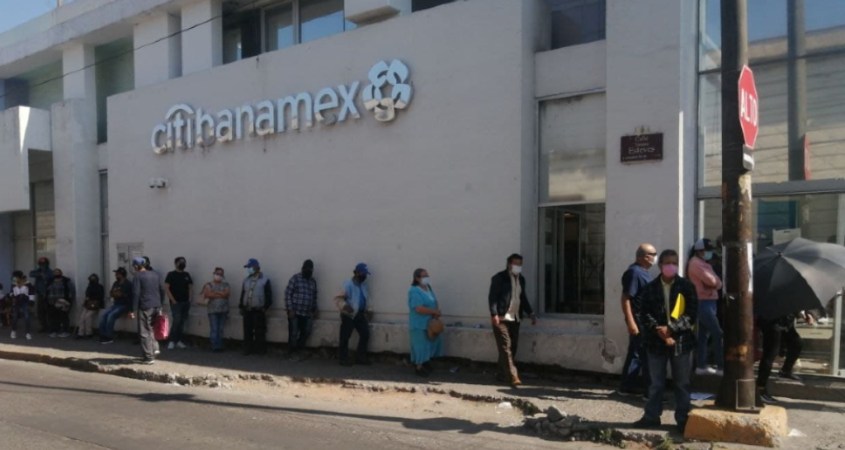 Mencionó que en ocasiones, hasta pasado el mediodía se pueden observar las filas de cuentahabientes. incluidos muchos adultos mayores que tienen que esperar de pie para que puedan entrar, cuando podrían darles prioridad al menos hasta que modifiquen el protocolo de atención.
