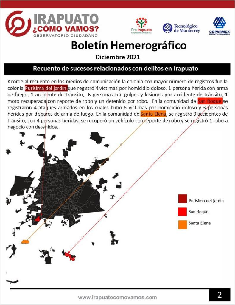 El Observatorio ciudadano Irapuato ¿Cómo vamos?, presenta el Boletín Hemerográfico del mes de diciembre 2021.