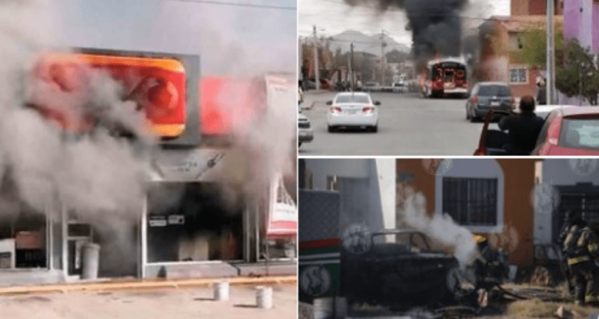 César Omar Muñoz, secretario de Seguridad Pública de Ciudad Juárez, detalló que fueron cinco camiones incendiados, cuatro vehículos, una antigua caseta de seguridad de la corporación y una tienda de conveniencia.