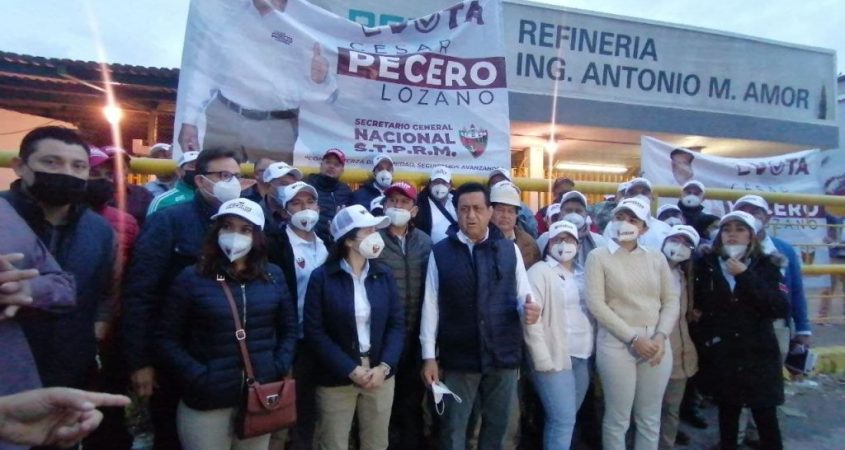 César Pecero Lozano, uno de los 25 candidatos que buscan ocupar la secretaría general del Sindicato Petrolero de la República Mexicana (STPRM), que dejó acéfala Carlos Romero Deschamps, arrancó su campaña en busca del voto de los sindicalizados en la puerta 4 de la Refinería ‘Ing. Antonio M. Amor’ de Salamanca.