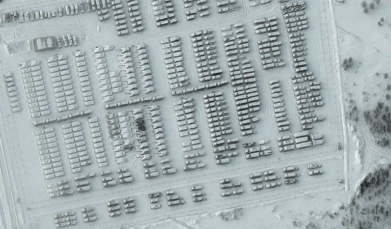 Imágenes de satélite mostraron una gran acumulación de tropas rusas en una base a 18 kilómetros de la frontera con Bielorrusia y muy cerca de la de Ucrania.