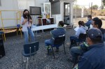 Los trabajadores con chalecos naranja, como pudieron, acomodaban muebles e insumos en parte del jardín principal y banquetas.