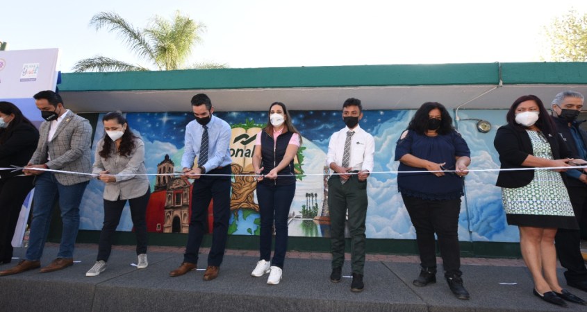 Las y los alumnos del Conalep, junto a las autoridades, inauguraron el mural realizado en sus instalaciones, que resalta los sentidos de identidad, pertenencia y orgullo por la ciudad.