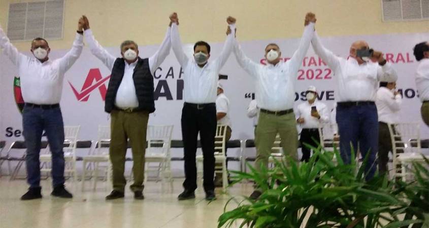 Acompañado del Secretario General de esta sección 24, Luis Miguel Lee Palos y del presidente del Grupo Renovador de Unidad, Fernando Pacheco Martínez; el aspirante a ocupar el cargo que dejó, Carlos Romero Deschamps, ofreció: