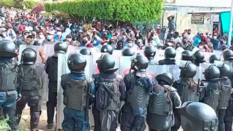 Cerca de las 11:30 horas, hombres y mujeres, supuestamente docentes del Grupo Poder de Base, avanzaron hacia la valla policial.