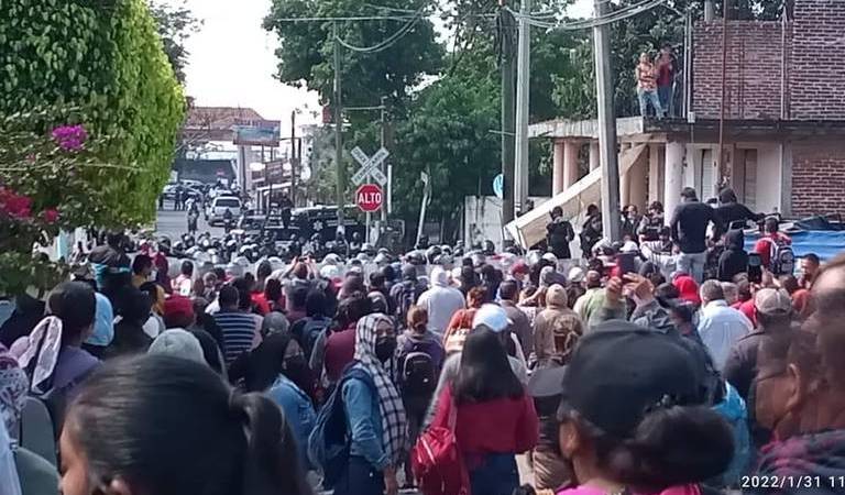 Sin embargo, en el material que circula en redes sociales se observa de nueva cuenta una valla de uniformados que impiden al magisterio llevar a cabo su manifestación. El gremio compartió un video donde se traslada a una persona herida, además policías y civiles se lanzan piedras entre sí.