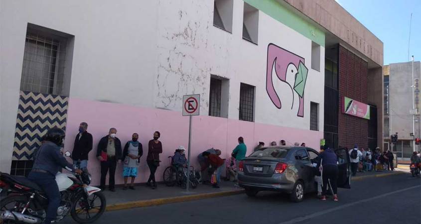 Cada día se aprecian numerosas filas de abuelitos en las inmediaciones de las oficinas de Correos donde, con su credencial de elector y copia, esperan su pago.