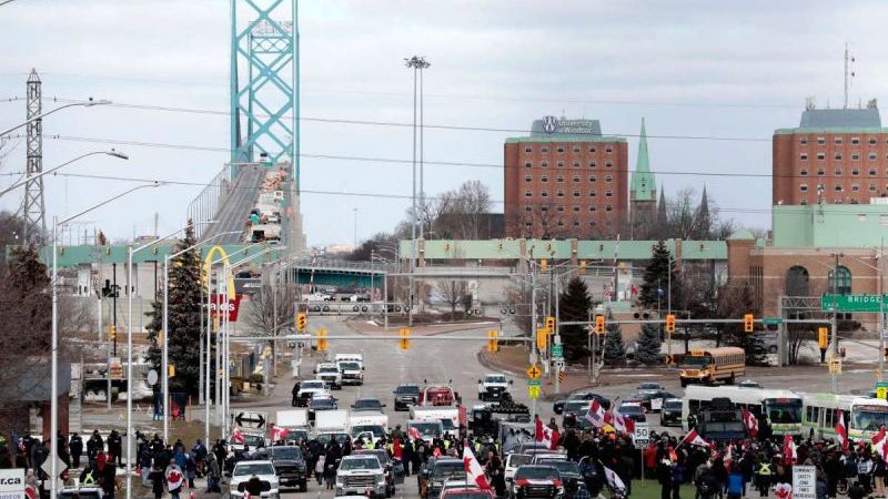 El bloqueo de ese puente que une a la ciudad canadiense de Windsor con la estadunidense Detroit, por donde pasa aproximadamente el 25% del comercio entre ambos países, obligó a los fabricantes de automóviles de los dos lados de la frontera a detener o reducir la producción.