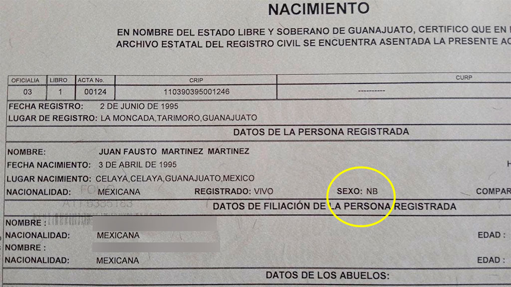 El pasado 11 de febrero, la Dirección General del Registro Civil del Estado de Guanajuato entregó la primera acta de nacimiento que reconoce a una persona de género no binario. Fausto Martínez, quien nació en Celaya, tiene ahora un documento donde que acredita su identidad, misma que peleó también ante el Instituto Nacional Electoral (INE).
