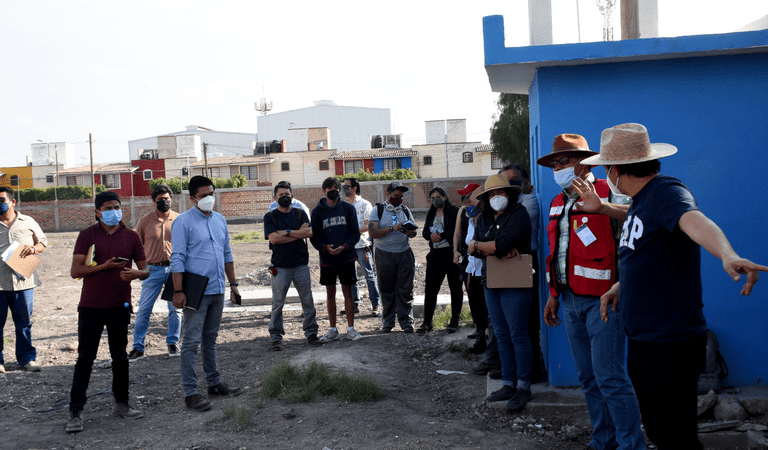Durante su visita al terreno, de aproximadamente una hora, los arquitectos reconocieron el estado real de la superficie, el tipo de vivienda que hay a los alrededores, los accesos, las vialidades y las diferentes alturas; a fin de considerar todos esos aspectos en el desarrollo de su proyecto.
