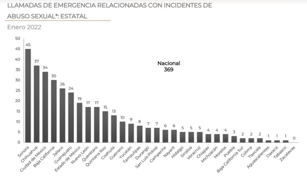 Por otro lado, el Secretariado Ejecutivo del Sistema Nacional de Seguridad Pública también muestra un gran número de casos en llamadas de emergencia relacionadas con incidentes de abuso sexual en Guanajuato.