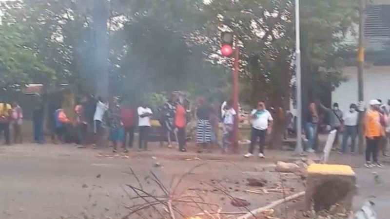 El grupo de haitianos lanzó piedras a la sede, quemaron basura y bloquearon la calle tras colocar rocas en ambos sentidos.