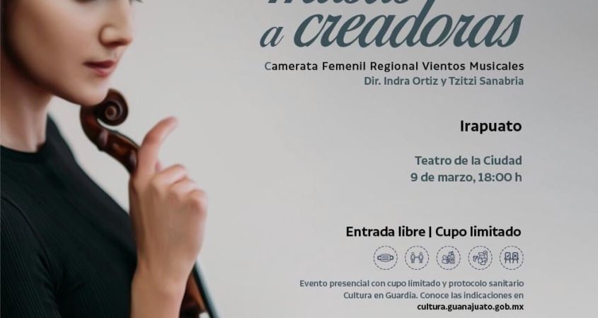 El miércoles 9 de marzo, a las 6:00 de la tarde en el Teatro de la Ciudad, con entrada libre, se realizará el concierto con una camerata formada únicamente por mujeres, quienes deleitarán los oídos de las y los asistentes.