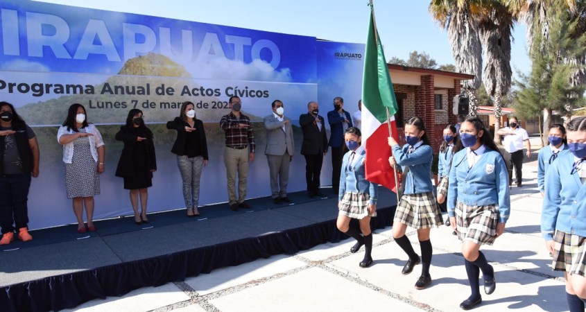 Nicolás Gutiérrez Ortega, delegado Región IV de la Secretaría de Educación de Guanajuato (SEG), reconoció la iniciativa del Gobierno de Irapuato para la realización del Programa Anual de Actos Cívicos, con el que se fomentan valores entre las y los estudiantes.