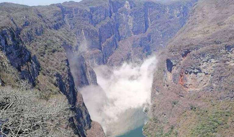 Derivado de un desprendimiento de rocas que se suscitó hace algunos momentos en una de las paredes del Parque Nacional Cañón del Sumidero, se optó por cerrar de manera preventiva la navegación.