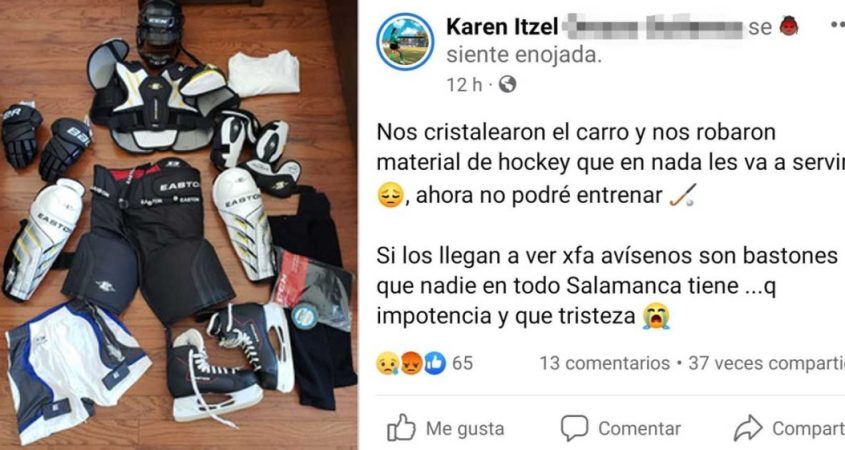 “Nos cristalearon el carro y nos robaron material de hockey que en nada les va a servir; ahora no podré entrenar. Si los llegan a ver por favor avísenos. Son bastones que nadie en todo Salamanca tiene… qué impotencia y qué tristeza”, denunció.