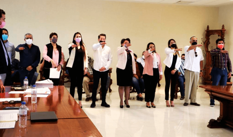 En el pleno del Ayuntamiento se le tomó protesta al consejo, mismo que quedo conformado de la siguiente manera: presidente, Jennifer ElaineEdith Rodríguez Pérez; secretario, Lic. Elvira Isaura Rubio Villa; tesorero,Lic. Juan Ibarra Fuentes; y como vocales: QFB. María Aydee Torres García, C.P. César Octavio Romero Rayas, Dra. Nadia Maritza Beas Gómez, Arq. Tania AnahiAdame Velazco, C.P. Gerardo Licea Aguilar, tesorero municipal, Arq. José Adrián Escobedo Alcántara, director de Infraestructura y Conectividad y Lic. Irving Gerardo Órnelas Rodríguez, regidor del H. Ayuntamiento.