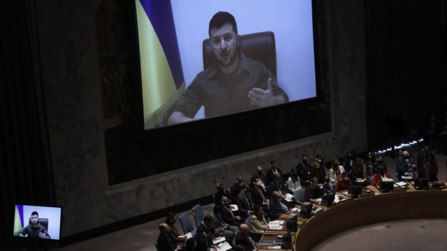 “Lo único que nos falta es el enfoque de principios de algunos líderes, líderes políticos, líderes empresariales, que todavía piensan que la guerra y los crímenes de guerra no son algo tan horrible como las pérdidas financieras”, agregó, hablando a través de un intérprete.