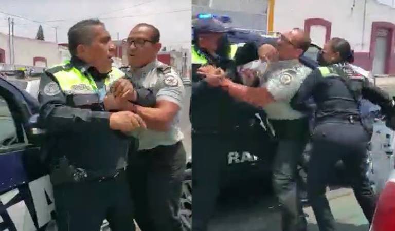 Dos agentes viales del municipio de Puebla y un elemento de la Guardia Nacional (GN) fueron grabados mientras reñían luego de que los primeros intentaron infraccionar al segundo en la colonia Resurgimiento de la ciudad de Puebla.