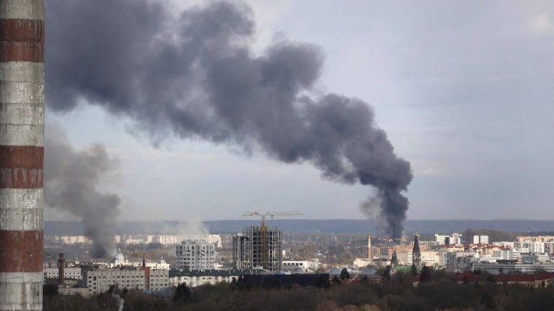 Espesas columnas de humo gris se elevaban detrás de los edificios de apartamentos, relató un residente del suroeste de Leópolis.