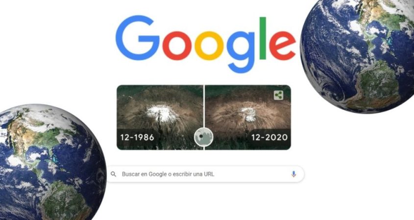El Doodle destaca imágenes reales del paso del tiempo de Google Earth y muestran los impactos del cambio climático en un lapso muy corto.