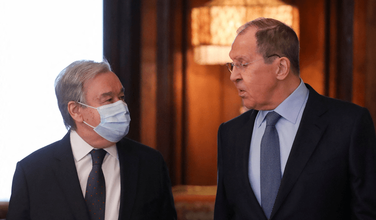 El secretario general de la Organización de Naciones Unidas (ONU), António Guterres, aseguró que el organismo está dispuesto a hacer todo lo posible para detener el conflicto armado en Ucrania, mientras sostenía una reunión con el ministro de Exteriores ruso, Serguéi Lavrov.