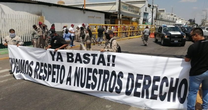 Cerca de unos 3 mil trabajadores petroleros de la refinería “Ing. Antonio M. Amor”, de PEMEX, marcharon y sesionaron en asamblea para exigir el cumplimiento al contrato colectivo de trabajo.