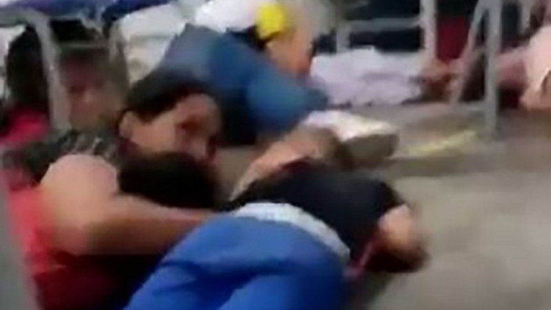 «No disparen, hay niños”, dice una mujer que intenta abrazar a uno de los menores que no paraba de llorar.