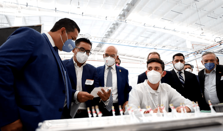 El alcalde Javier Mendoza Márquez reconoció el reconoció el esfuerzo y la perseverancia de los directivos Peter Broer, CEO y Fundador de Lumitex, y Paul Karon, CEO y Fundador de Entrada Group de México, por iniciar operaciones en plena pandemia e incluso tener un crecimiento en la producción.