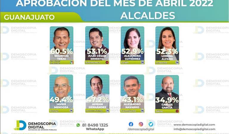 Por tercer mes consecutivo, Mauricio Trejo Pureco, alcalde de San Miguel de Allende, se coloca en el primer lugar del ranking de aprobación de los alcaldes del estado de Guanajuato de la encuestadora privada Demoscopía Digital, con un 60.5%, lo que demuestra la confianza de los sanmiguelenses por el trabajo realizado en la actual administración municipal de esta importante ciudad Patrimonio de la Humanidad.
