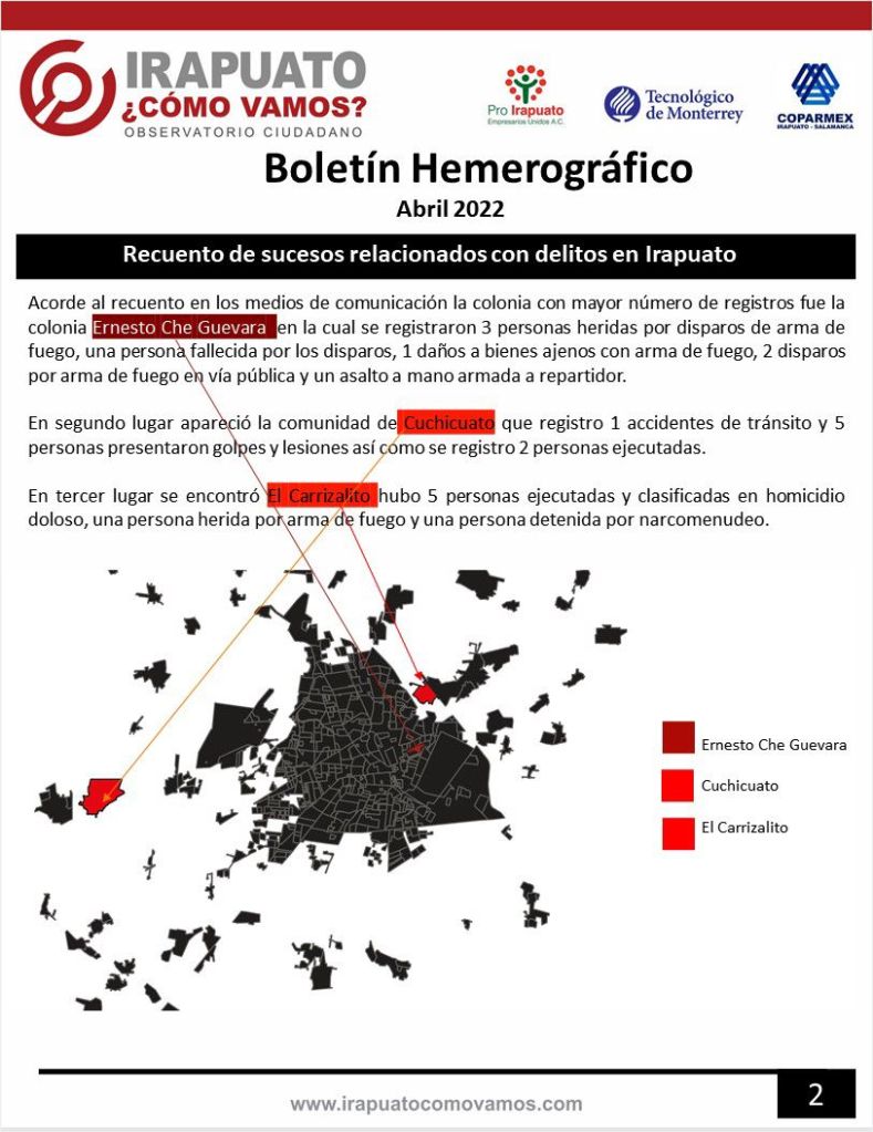 El Observatorio ciudadano Irapuato ¿Cómo vamos?, presenta el Boletín Hemerográfico del mes de abril 2022.