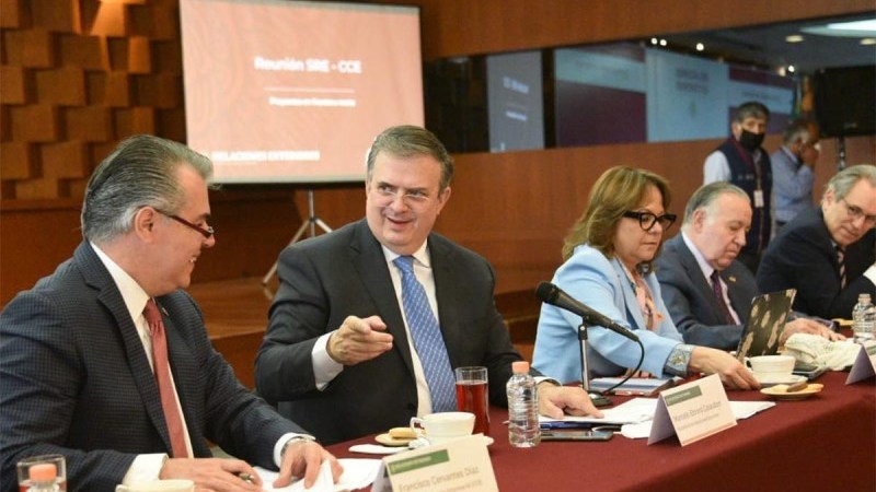 El secretario de Relaciones Exteriores, Marcelo Ebrard, sostuvo este martes una reunión de trabajo con los integrantes del Consejo Coordinador Empresarial (CCE), encabezados por su presidente Francisco Cervantes, en la se dio seguimiento a los acuerdos de la reunión celebrada el pasado 17 de marzo.