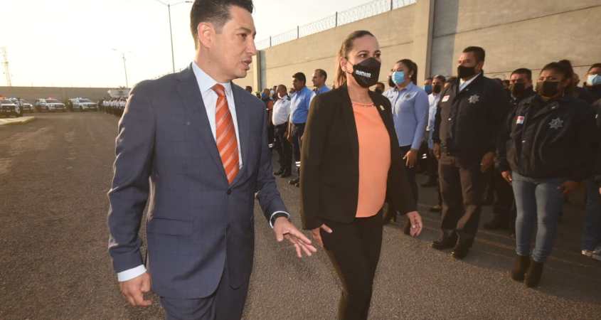 Esta mañana, la presidenta municipal Lorena Alfaro García, en compañía de Luis Ricardo Benavides Hernández secretario de Seguridad Ciudadana, pasaron lista a las y los elementos de la corporación y escucharon el parte de novedades.