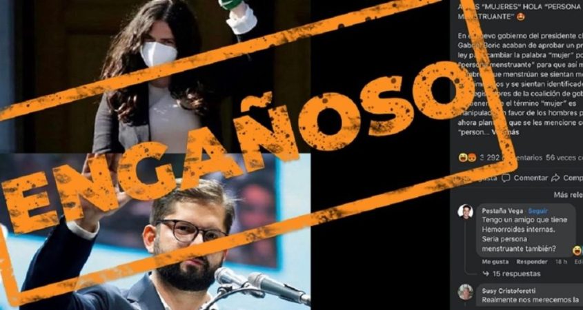 A través de redes sociales, circula la noticia de que el gobierno de Boric aprobó un proyecto de ley para modificar la palabra mujer por la de “persona menstruante”, sin embargo, esta información es engañosa.