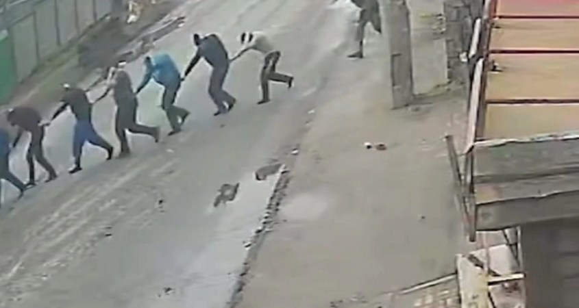 “Los rehenes están tirados ahí, contra la valla”, dice la persona que graba uno de los videos. Cuenta: “Uno, dos, tres, seguro, cuatro, cinco, seis…”. En total, hay nueve personas retenidas.