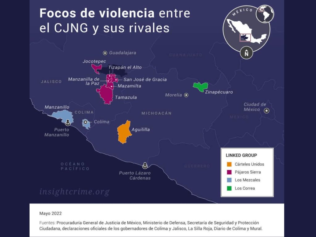 En parte, esto tiene que ver con la geografía de la zona: el pueblo de Aguililla, donde nació El Mencho, está en el centro de la batalla. La violencia incrementó en Aguililla luego que el CJNG intentara despojar a rivales locales como los Cárteles Unidos. Esta, se trata de una alianza de células criminales que incluye a Los Viagras y al Cartel de Tepalcatepec.