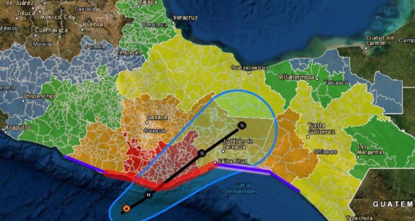 Asimismo, presenta vientos sostenidos de 175 km/h, con rachas de viento de 215 km/h y avanza hacia el noreste a una velocidad de 13 km/h. Según los pronósticos de la Conagua, este huracán ingresaría a tierra durante la tarde de este lunes, entre las 14:00 y las 16:00 horas, en una zona entre los municipios de Santa María Tonameca y San Pedro Pochutla, Oaxaca.