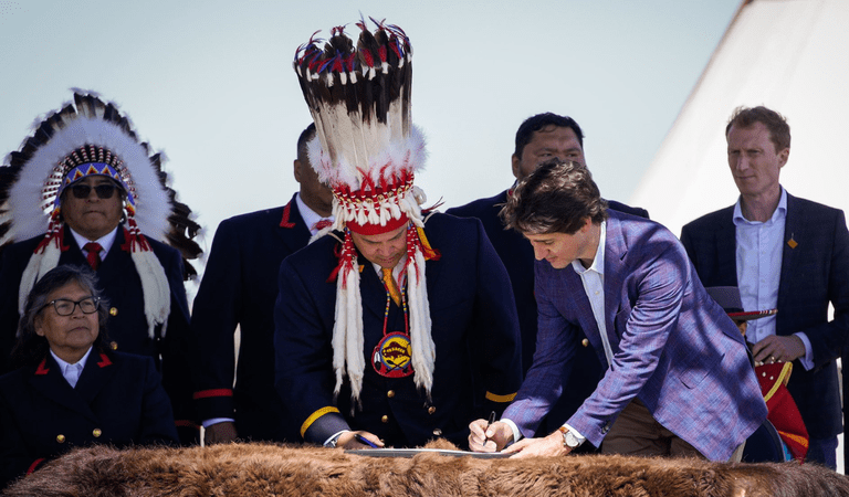 Trudeau calificó el acuerdo con los siksika como histórico y dijo que «corrige un error del pasado cometido por el Gobierno de Canadá».