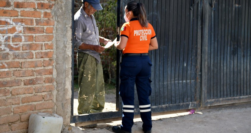 Con la campaña ‘Autoprotección en Casa’, elementos de Protección Civil y de Bomberos acudieron a las colonias Los Hoyos y Hacienda de La Virgen para entregar casa por casa trípticos informativos e invitaron a las y los vecinos a tomar medidas en el hogar para corregir situaciones que puedan afectar su patrimonio e incluso su integridad física.