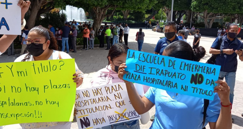 Estudiantes de la Escuela de Enfermería se manifestaron para exigir la entrega de los títulos y plazas para servicio social; hay casos desde el 2014 que aún no obtienen el título.