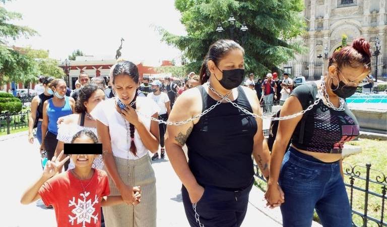 Ante la negativa de las líneas de transporte caminaron hasta la Plaza de Armas para solicitar el apoyo de las autoridades estatales, esto incluso con un grupo de mujeres encadenándose del cuello, para solicitar una respuesta a su petición.