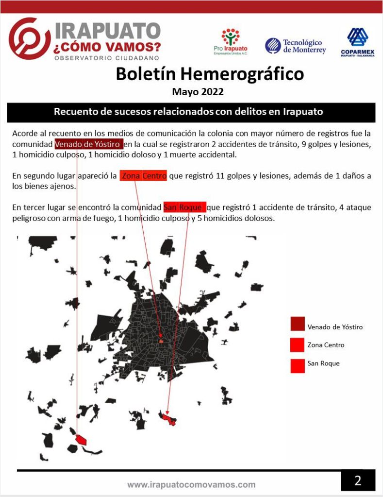 El Observatorio ciudadano Irapuato ¿Cómo vamos?, presenta el Boletín Hemerográfico del mes de mayo 2022.