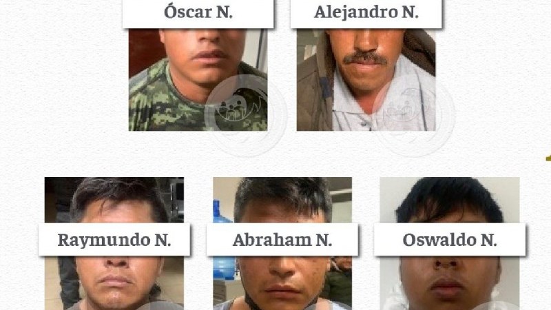 Óscar ’N’, Alejandro ’N’, Raymundo ’N’, Abraham ’N’ y Oswaldo ’N’, todos pobladores de la comunidad de Papatlazolco, fueron detenidos esta madrugada tras la ejecución de 12 órdenes de cateo con la colaboración de elementos de la Policía Estatal y de la Guardia Nacional, informó la Fiscalía de Puebla.