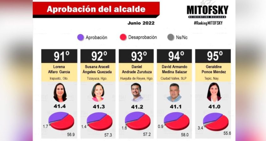 Del 5 al 13 de junio pasado, la empresa Mitofsky realizó una encuesta telefónica a habitantes de 101 municipios mayores de 18 años, para evaluar el desempeño de los alcaldes. Los resultados de la encuesta se publicaron este miércoles.